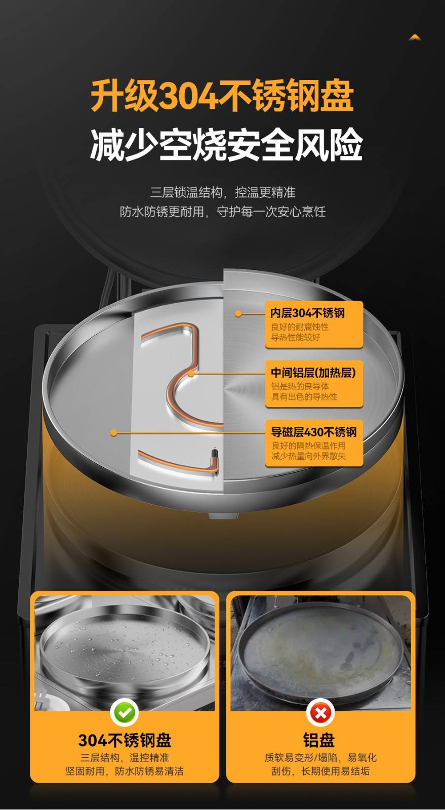 锅体材质:304不锈钢复底锅