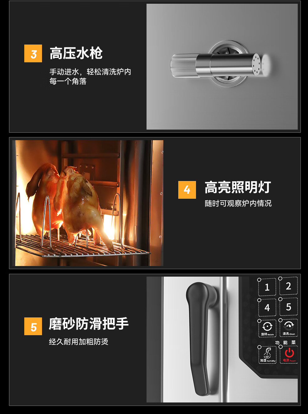 功能特征:微波+旋转+热风