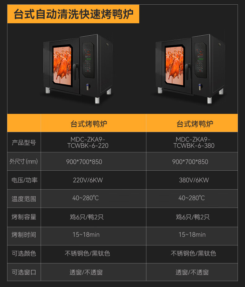 烤制容量:3斤鸭10-12只,5斤鸭8-10只,7斤鹅3-4只