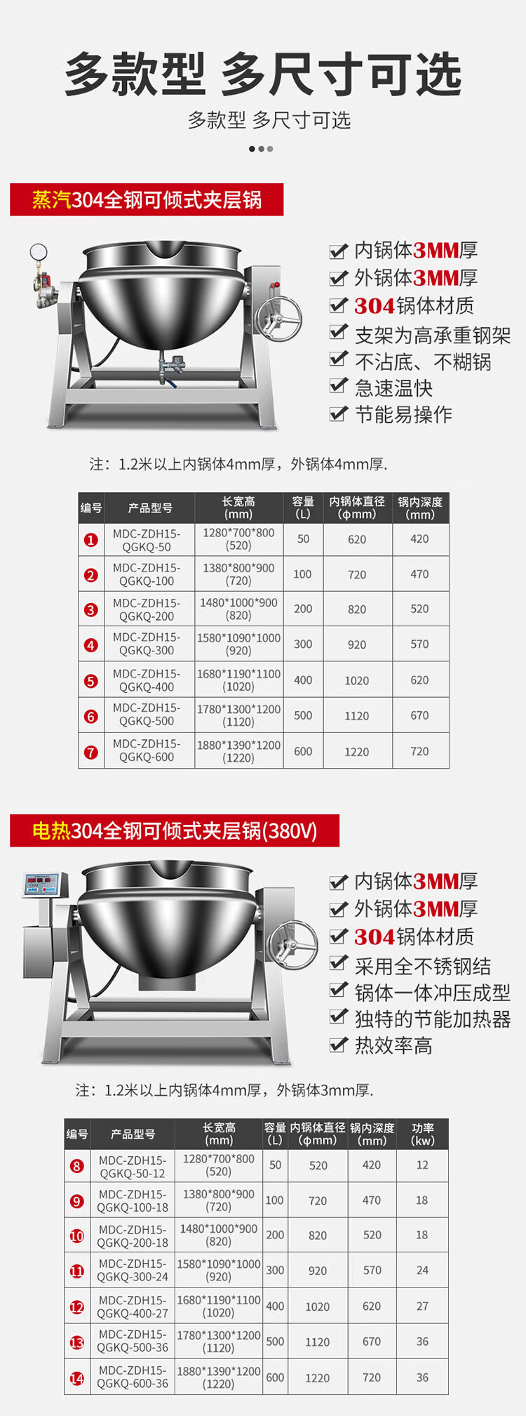 锅内深度:420/470/520/570/620/670/720mm